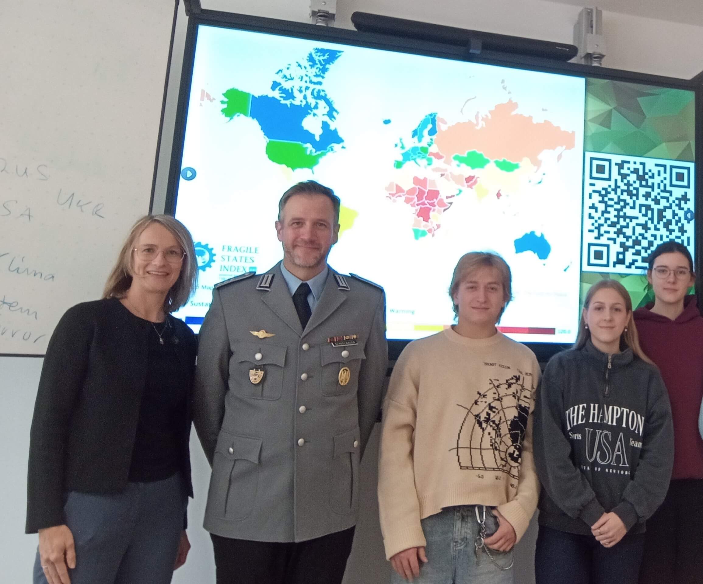 Im Rahmen des Leistungsfachs Politik und Gesellschaft der 12. Jahrgangsstufe beschäftigten sich die 10 Schülerinnen und Schüler unter der Leitung von Simone Blaschke intensiv mit den Themen Frieden und Sicherheit. Dabei untersuchten sie die globalen Herausforderungen für den Weltfrieden sowie die Rolle Deutschlands in der Welt, u.a. in internationalen Organisationen wie der UNO und der NATO. Sehr beeindruckend war, dass die deutsche Außenpolitik ...
